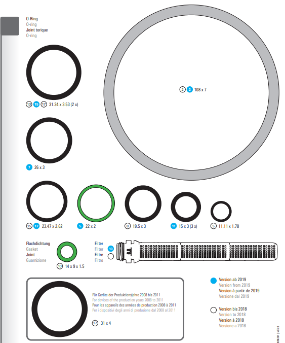 Sachet de joint pour la cuve - Pièce n° 2, 5, 7, 6A, 8, 9 et 12A